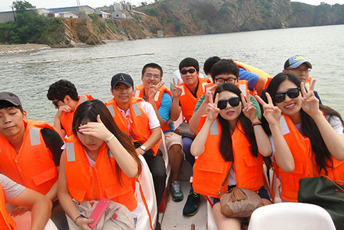 2013年8月22日,大連海洋大學趙前程院長及韓國蔚山科學大學畢業生來到天正休閑漁業基地,他們在休閑漁業導游張立娜的引導下,登陸快艇,體驗異國海上風光,感受紅旗東方鲀養殖文化。他們開心的坐在游艇上,拿著照相機快速按下喜悅的快門,一處處異國風光環繞著他們,一排排養殖紅旗東方鲀的網箱映入眼簾,他們在快樂中學習網箱養殖河豚魚知識,在愉悅中體驗海洋文化。