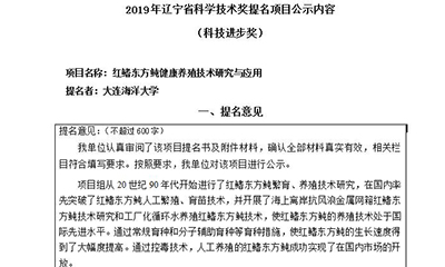 根據《關于2019年度遼寧省科學技術獎提名工作的通知》(遼科獎辦發〔2019〕1號)的規定,現將我公司與大連海洋大學合作完成的擬提名參加2019年度遼寧省科技獎勵評審的1個項目予以公示...